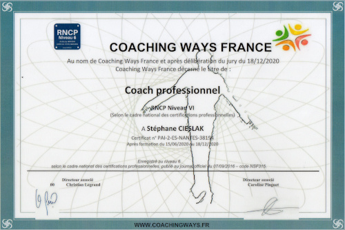 Coach professionnel RNCP certifié Coaching Ways France (programme ACTP ICF), je continue de me former pour proposer le meilleur accompagnement possible à mes clients.